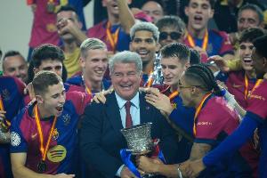 体育资讯12月23日讯 据西班牙媒体《先锋报》报道,巴萨主席拉波尔塔将携阵中球星亚马尔出席周日在迪拜举行的环球足球奖颁奖典礼。